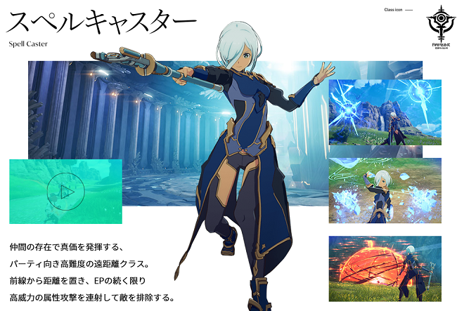 スペルキャスターは「パーティ向き高難度の遠距離クラス」と公式サイトにある通り、パーティでの戦闘に長けたクラスです。